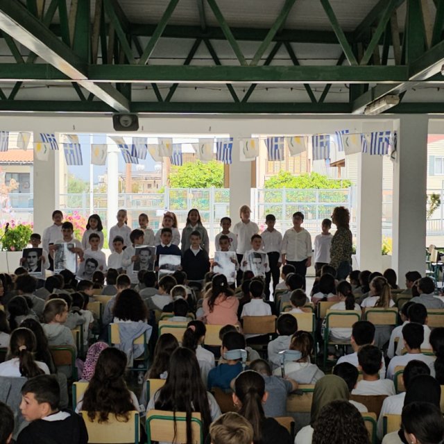 Την Παρασκευή 29 Μαρτίου 2024 έγινε εκδήλωση για την 1η Απριλίου. Την εκδήλωση διοργάνωσε η δασκάλα της Γ΄2 Εύα Γκολιομύτη μαζί με τους μαθητές της. Τα παιδιά παρουσίασαν θεατρικό, πληροφορίες για τους ήρωες του απελευθερωτικού αγώνα 1955-59 και ποιήματα. Η μουσικός του σχολείου μας κ. Μαρία Ιωαννίδη διεύθυνε τη χορωδία του σχολείου, η οποία τραγούδια σχετικά τραγούδια.