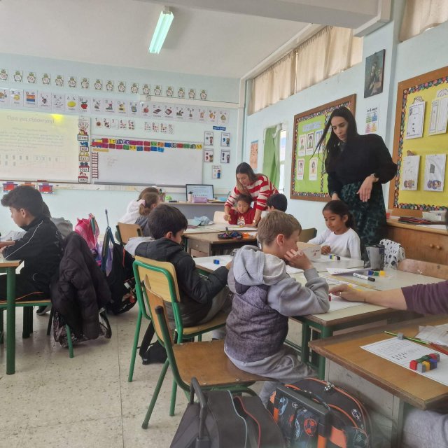Η υπεύθυνη δασκάλα της Α΄2 τάξης Άντρια Θεοδώρου και η υπεύθυνη δασκάλα της Μονάδας Ειδικής Εκπαίδευσης πραγματοποίησαν δυνδιδασκαλία στην Α' τάξη. Το μάθημα είχαν την ευκαιρία να παρακολουθήσουν και άλλοι εκπαιδευτικοί του σχολείου μας.