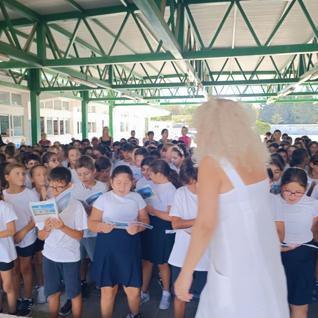 Στην εκδήλωση συμμετείχε και η χορωδία του σχολείου , που τραγούδησε επετειακά τραγούδια.